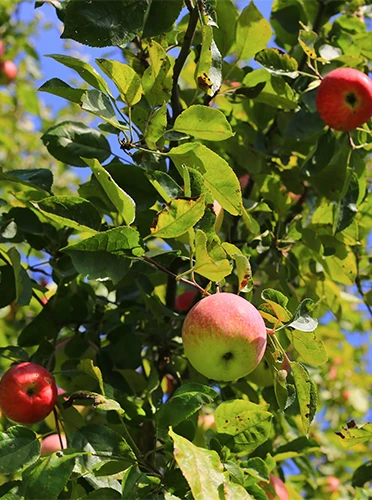 Naša ekipa uporablja ustrezno opremo in tehnike, prilagojene vrsti sadnega drevesa, starosti in stanju krošnje, tudi na težje dostopnih lokacijah.